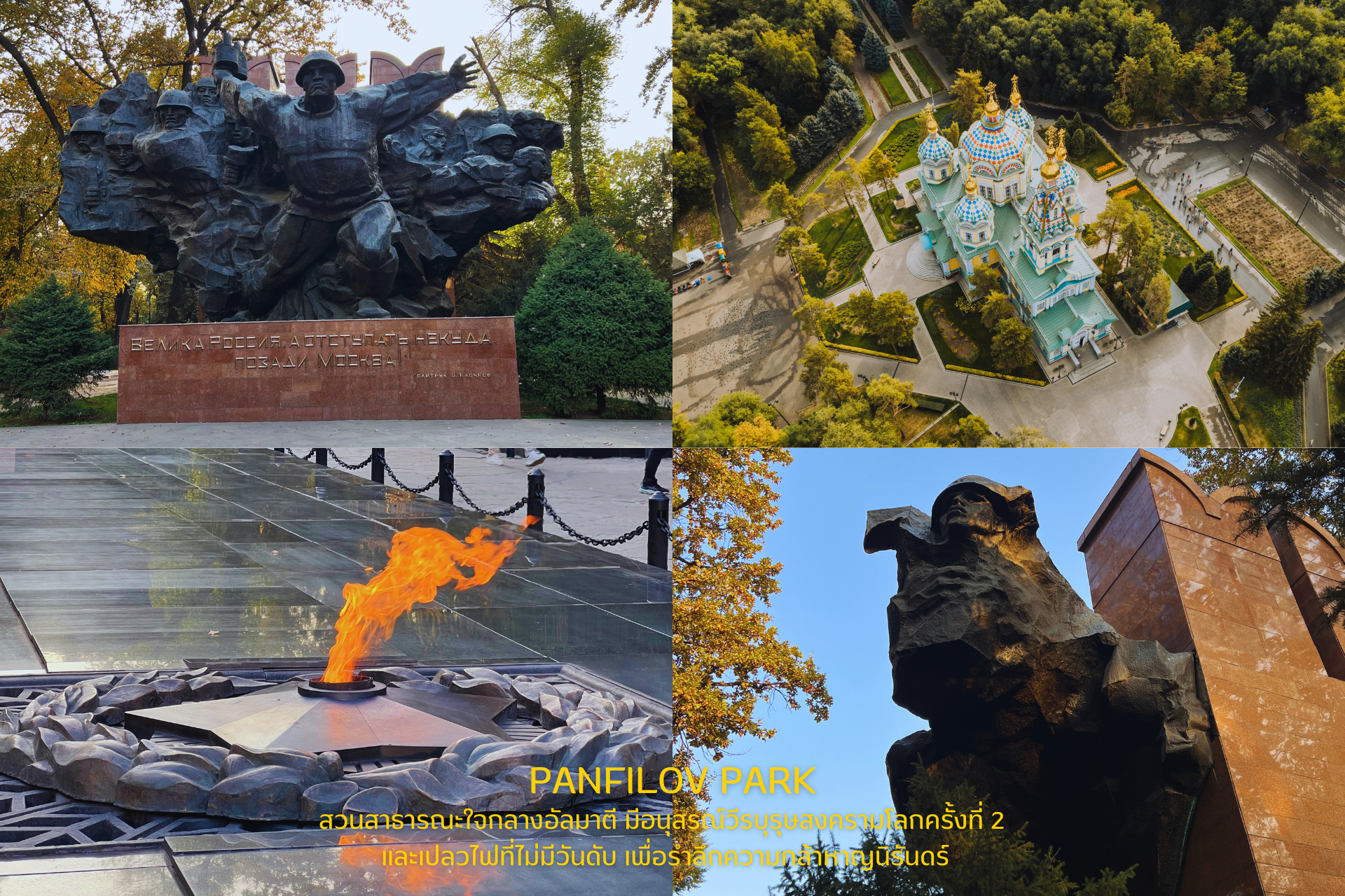สวนสาธารณะแพนฟิลอฟ (Panfilov Park) ไม่ได้เป็นแค่สวนสาธารณะธรรมดาๆ แต่เป็นสถานที่ที่เต็มไปด้วยประวัติศาสตร์ ที่นี่เป็นที่ตั้งของอนุสาวรีย์ทหาร 28 นายแห่งแพนฟิลอฟ (Panfilov's 28 Guardsmen Memorial) ที่สร้างขึ้นเพื่อรำลึกถึงวีรกรรมของทหารที่เสียสละในสงครามโลกครั้งที่สอง และยังเป็นที่ตั้งของอาสนวิหารเซนคอฟอีกด้วย